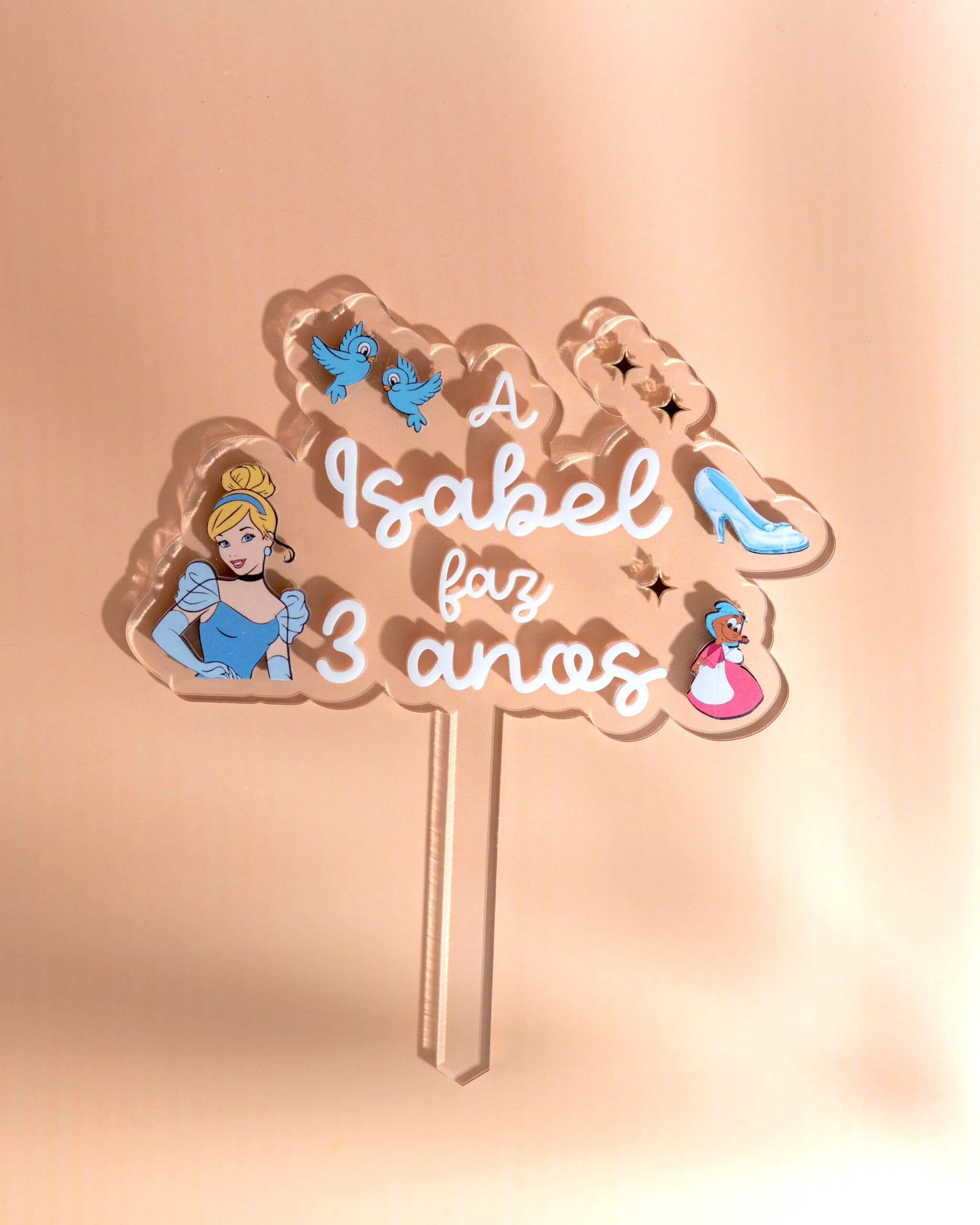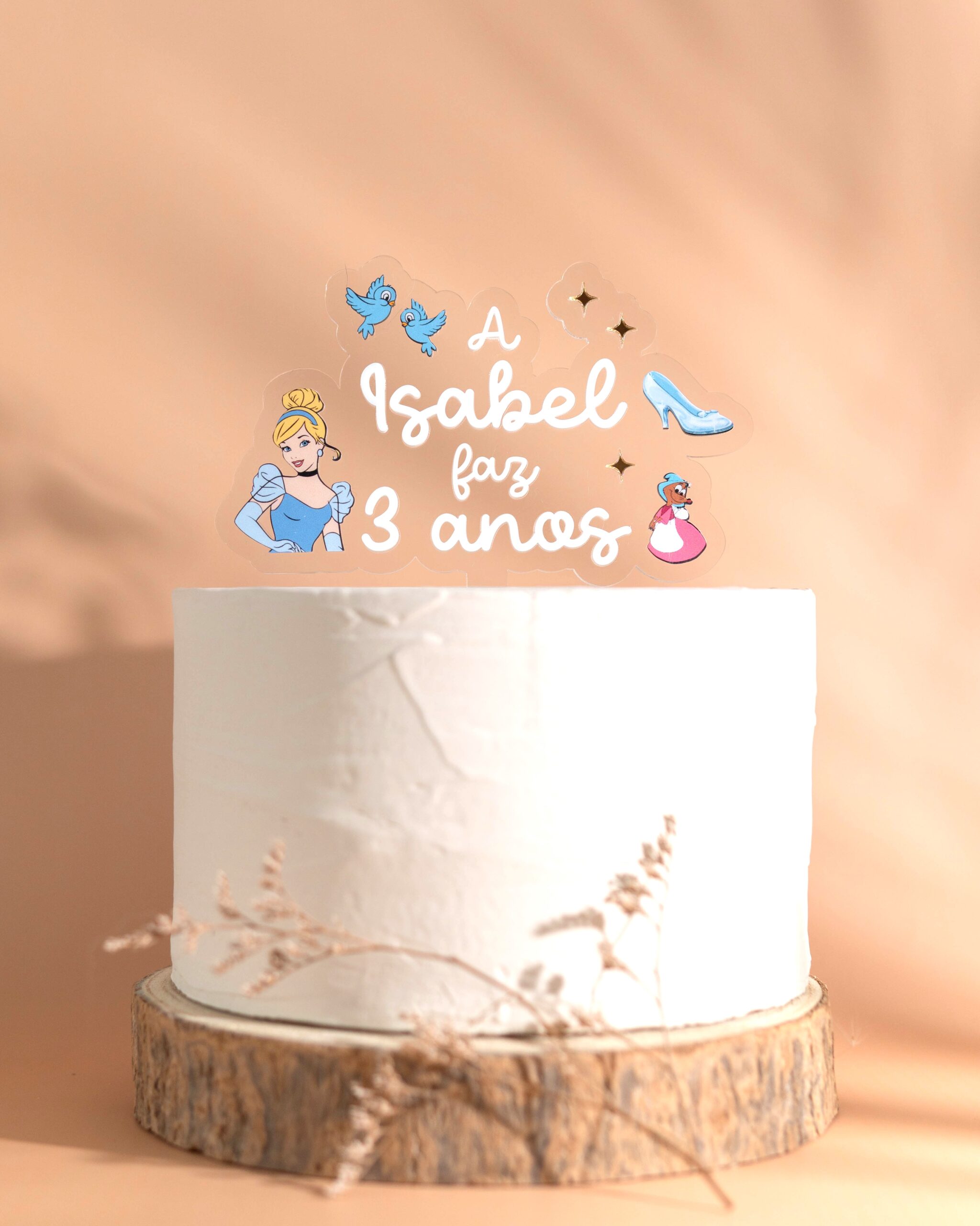 Dê um toque de conto de fadas à sua festa com este topo de bolo inspirado na encantadora Cinderela! 💙👠