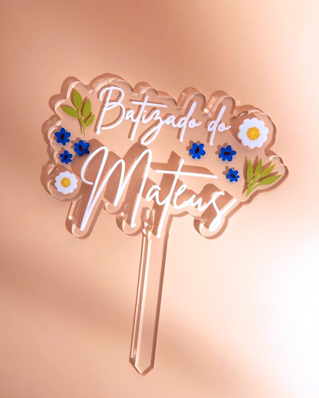 Celebre momentos especiais com um topo de bolo personalizado, adornado com a delicadeza e encanto das flores do campo! Feito em acrílico de alta qualidade, este topo de bolo destaca-se pelo seu design elegante, com elementos florais suaves que trazem um toque romântico e natural à sua celebração. 🌾✨