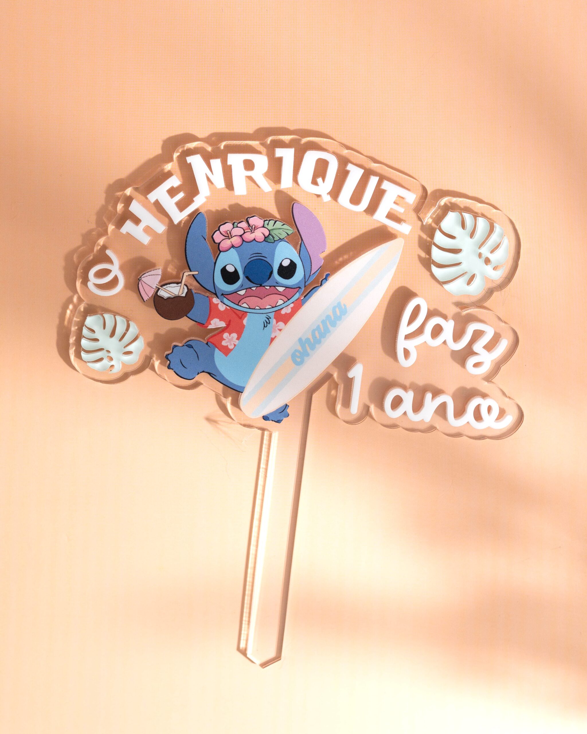 Leve a energia tropical para a sua festa com este topo de bolo inspirado no Stitch a surfar nas ondas do Havai! 🏝️💙